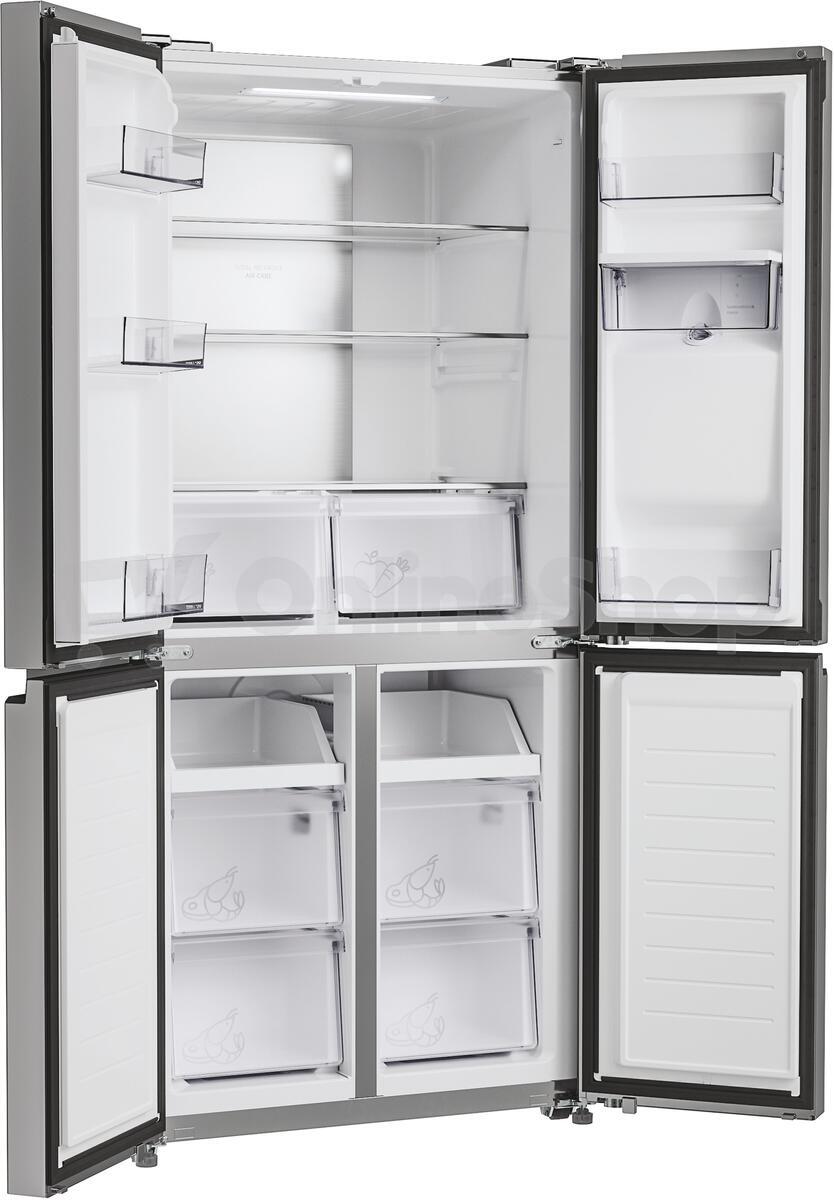 Chladnička - americká chladnička, volně stojící, mrazák dole, energetická třída E, počet dveří: čtyřdveřová, No Frost, mrazák, displej, prázdninový režim, šířka 83,3 cm, hlučnost 36 db..