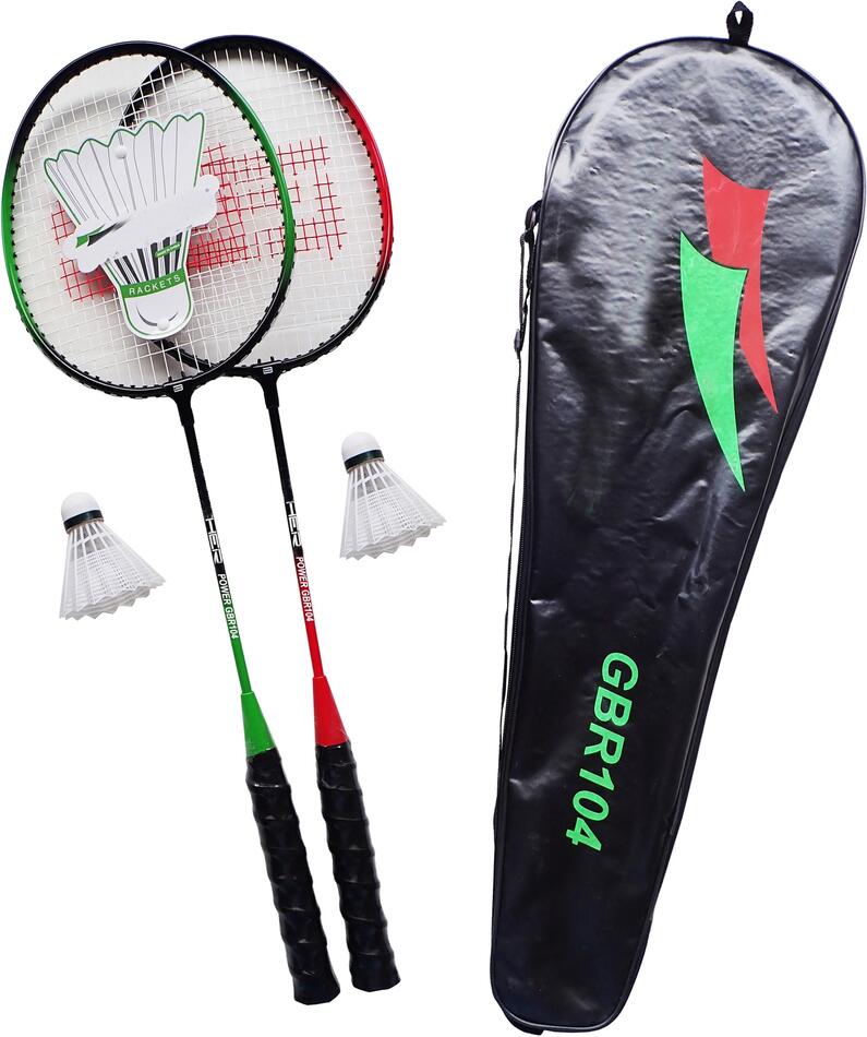 Tato badmintonová sada je ideální pro rekreační hráče, kteří hledají kvalitní a odolné vybavení. Sada obsahuje dvě kvalitní ocelové odlehčené rakety s pevným výpletem napnutým na tah 8 - 9 kg, což zajišťuje dobré herní vlastnosti. Rukojeti raket jsou opatřeny pevnou omotávkou, která se příjemně drží v rukách. Součástí balení jsou také dva košíčky na hru. Celá sada je uložena v praktické nylonové tašce s potiskem. Rakety jsou dostupné ve dvoubarevném provedení v červenočerné a zelenočerné barvě, jak je vidět na fotografii.