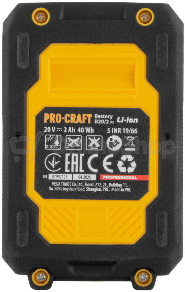 Sada obsahuje dvě baterie Procraft 20V 2Ah s ochranou proti přehřátí a vybití a nabíječku. Ideální doplněk pro nepřerušovanou práci s aku nářadím Procraft.