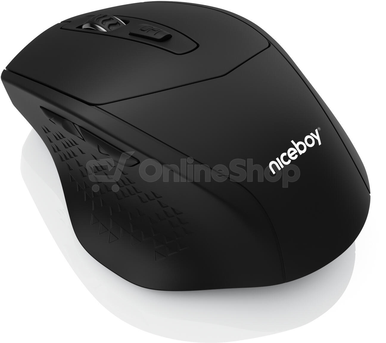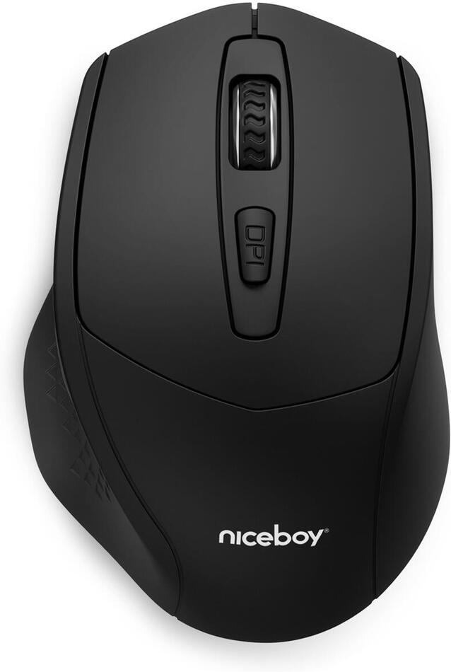 Niceboy OFFICE M10 Ergonomic je bezdrátová myš kompaktních rozměrů s ergonomickým designem. S počítačem myš komunikuje přes přiložený bezdrátový USB přijímač. Pohyb snímá rychlá a přesná optická technologie. Napájení obstará jedna AA baterie. Svým tvarem je myš Niceboy OFFICE M10 Ergonomic určena pro praváky.