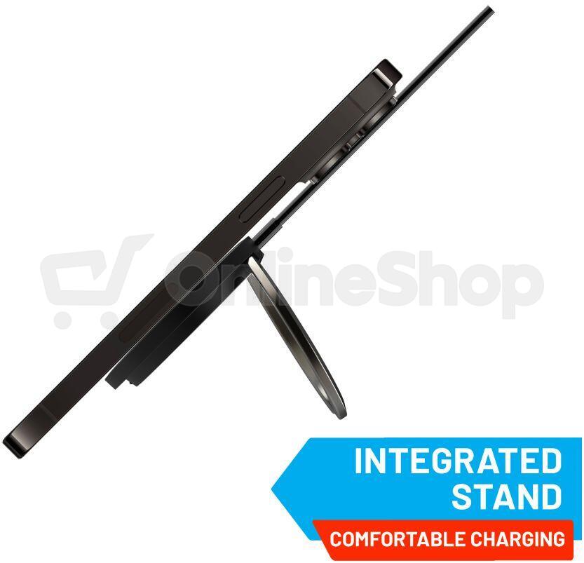 Vylepšená verze oblíbené bezdrátové nabíječky v novém designu s kovovým vyklápěcím stojánkem je navržena přímo pro iPhone 12 a vyšší s podporou funkce MagSafe. Integrované magnety bezpečně uchytí nabíječku k tělu telefonu a usnadní manipulaci při nabíjení. Díky technologii Qi lze nabíjet i smartphony jiných značek s výkonem až 15W (7,5W pro iPhone). Nabíjení se spustí okamžitě po přiložení nabíječky k zádům telefonu, před poškrábáním je chrání jemný silikonový povrch nabíječky. Připojený kabel o délce 1,2 m je ukončený USB-C konektorem pro připojení do nabíjecího adaptéru. Díky stojánku z odolné broušené slitiny si můžete během nabíjení telefon postavit do horizontální nebo vertikální polohy. Tenké tělo nabíječky dokonale splyne se zády telefonu.