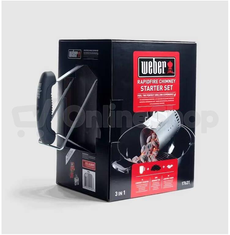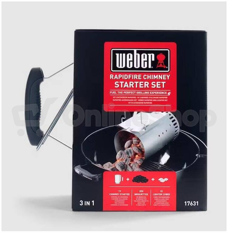 Zapalovací set s Weber® Rapidfire® zapalovacím komínem, 2 kg nových briket Weber® a 6 ks podpalovacích kostek.