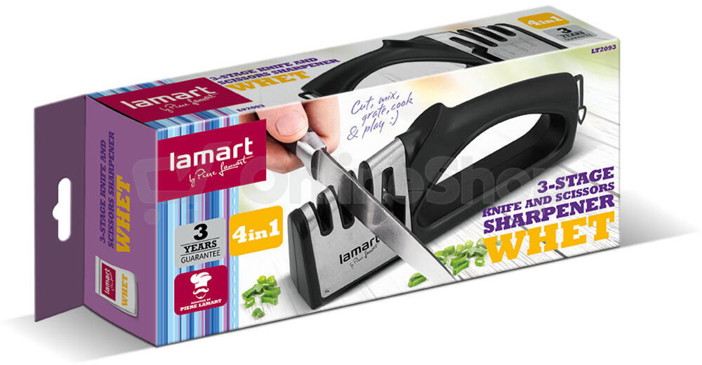 Brousek na nože * LAMART LT2093 * 3-stupňový brousek na nože a brousek nůžek vyroben z ABS plastů se soft...