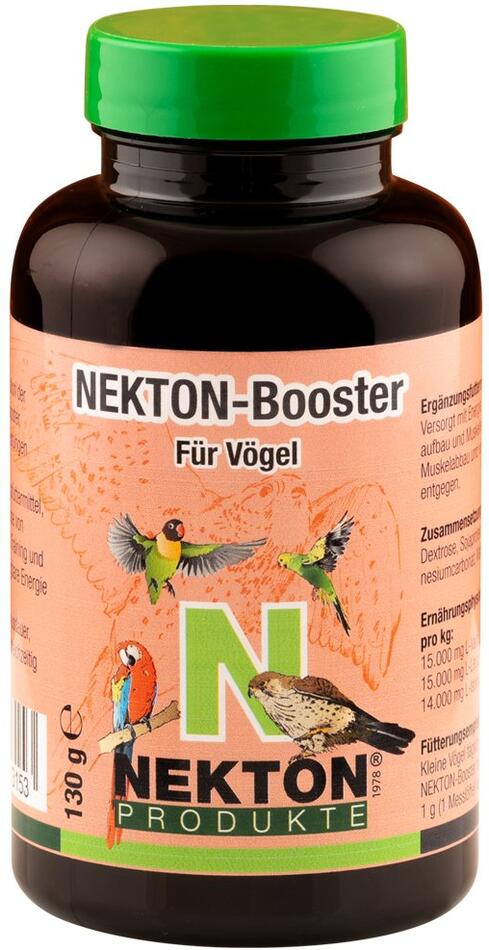 NEKTON-Booster obsahuje aminokyseliny s rozvětveným řetězcem, které zajišťují maximální produkci energie během letu, a také izolát syrovátkové bílkoviny, který je tělu k dispozici během několika minut díky struktuře s krátkým řetězcem a podporuje tak budování a regeneraci svalstva. NEKTON-Booster je velmi dobrým dodavatelem energie, zvyšuje vytrvalost, sílu a aktivitu a současně působí proti únavě. Díky vyváženému složení je NEKTON-Booster ideální pro budování svalstva mladých ptáků během chovu.
