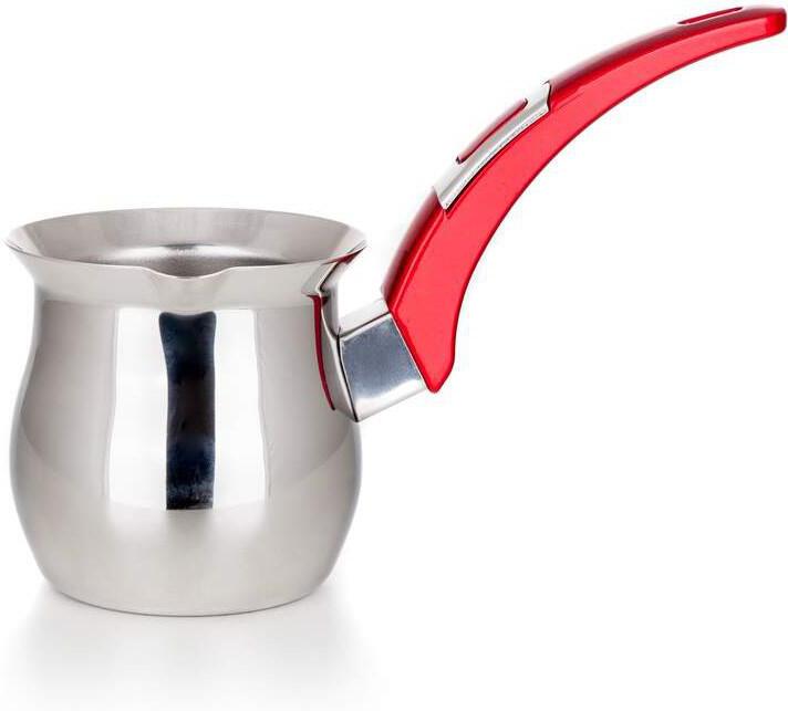 Nerezová džezva VISTA RED se zaoblenou rukojetí o objemu 350 ml, je vyrobená z nerezové oceli 18/10, tloušťka stěny 0,70 mm. Má sendvičové dno s vysokou tepelnou vodivostí, dlouhodobě udrží jídlo v teplém stavu. Džezva je použitelná pro všechny typy sporáků a má žáruvzdorná držadla, která jsou vyro