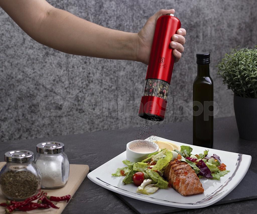 Elektrický mlýnek na pepř a sůl BerlingerHaus BH-7217, 2ks, Burgundy Metallic Line