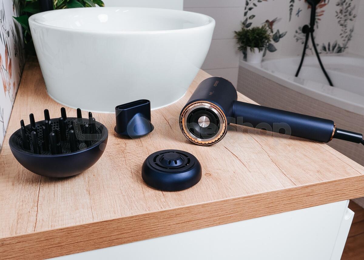 • BLDC motor: Bezkartáčový motor s až 110 000 otáčkami za minutu je výkonný, tichý a má delší životnost než běžné motory. Umožňuje rychlé a šetrné sušení bez přehřívání vlasů.