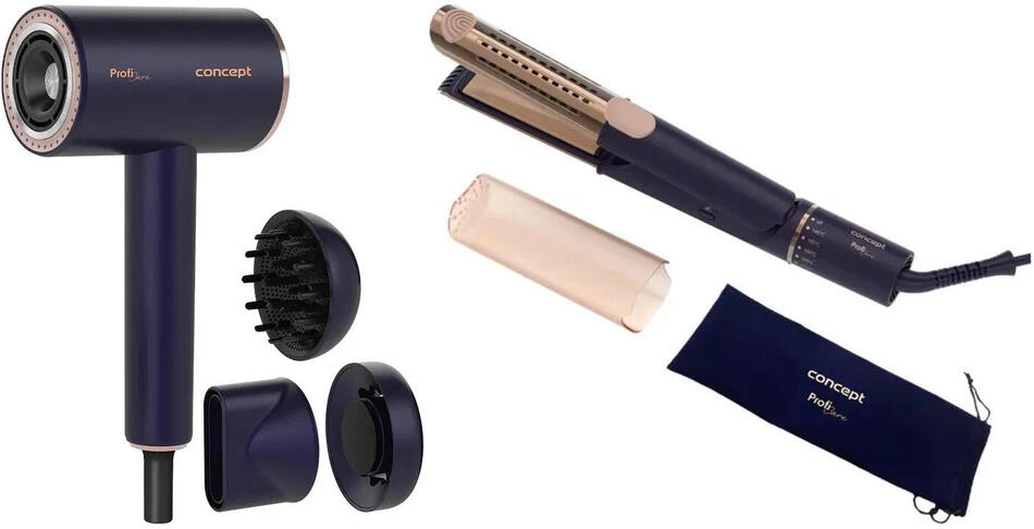 SET Fén na vlasy Concept VV8100 BLDC PROFI Care+ Žehlička na vlasy Concept VZ8100 PROFI Care se studeným vzduchem