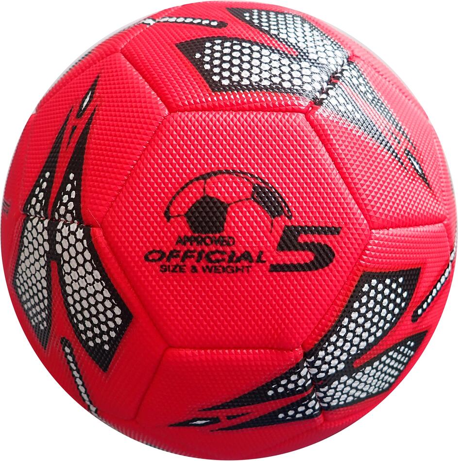 Kopací míč velikosti 5 s vyztuženým povrchem proti oděru je vyroben v červené barvě. Tento lehčí míč, vážící přibližně 320 g, je určen pro rekreační hru na různých površích. Je vyroben ze speciálního PVC a má třívrstvou konstrukci s odolným profilovaným povrchem ve stylu "diamond". Díky své speciální vrchní vrstvě je vhodný pro použití na trávě nebo písku, ale není vhodný pro hrubší povrchy, jako je beton nebo asfalt. Jeho nižší hmotnost a pružný povrch činí míč ideálním pro děti.