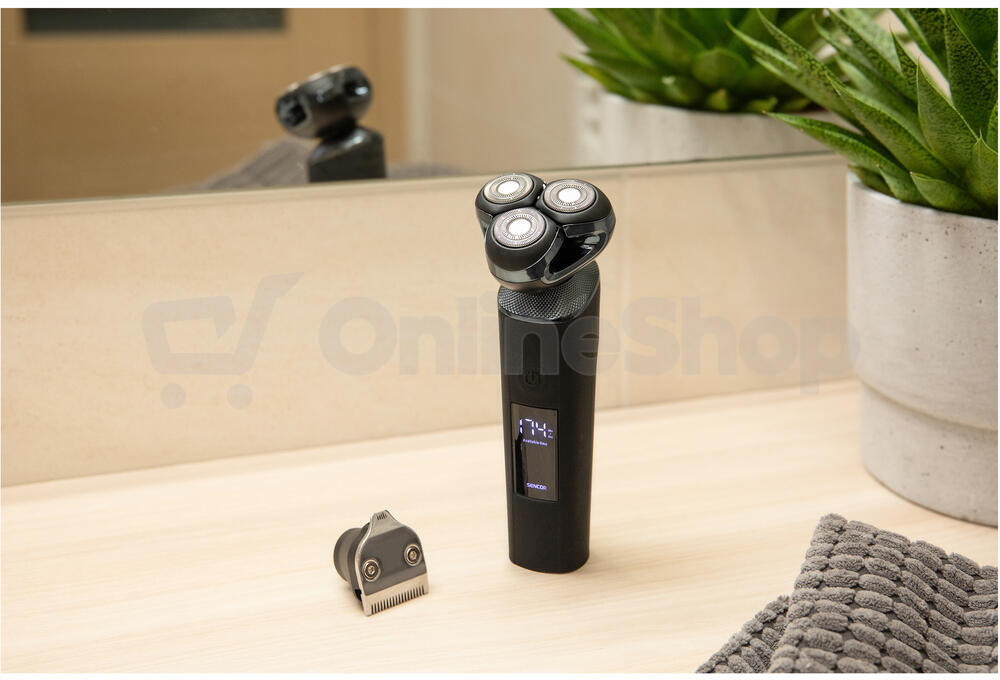 Disponuje 3 rotujícími holicími hlavami a také vyměnitelným nástavcem pro dokonalou úpravu kotlet či linie vousů.