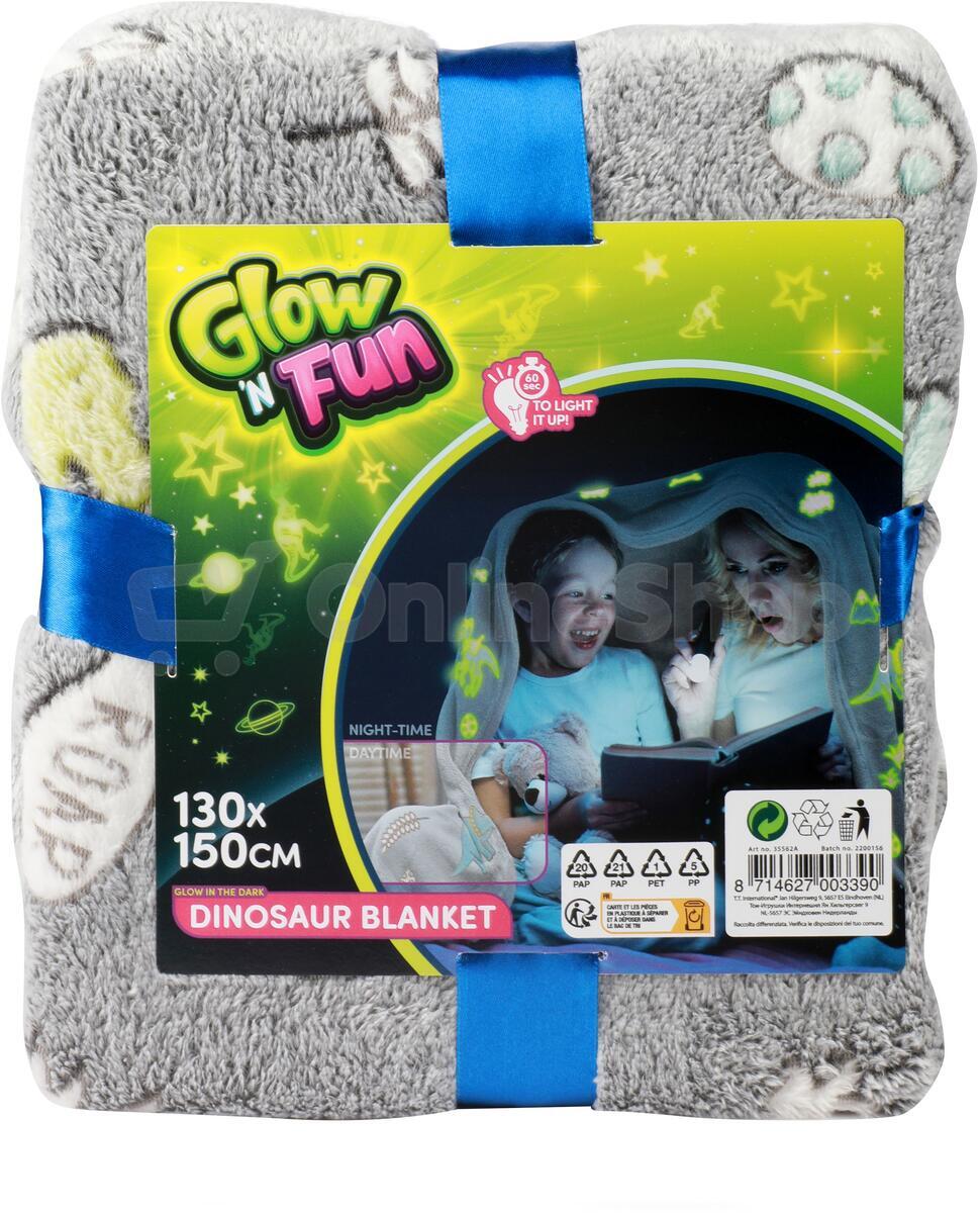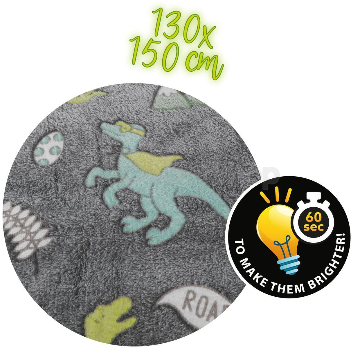 Teddies Deka Dinosaurus svítící ve tmě plyš 130x150cm šedivá