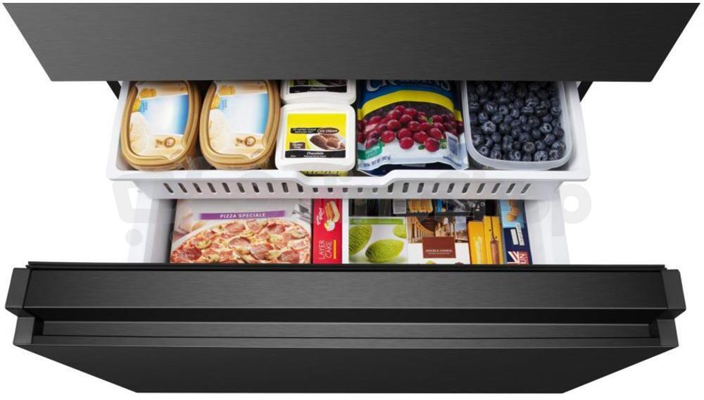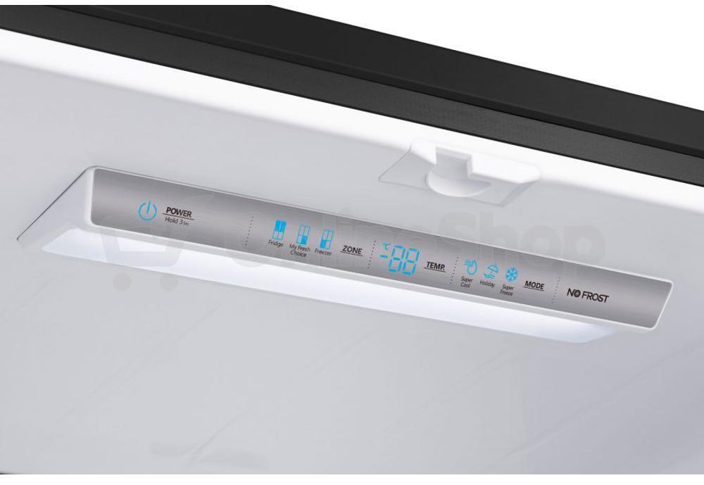 Chladnička - kombinovaná chladnička, volně stojící, mrazák dole, energetická třída E, hlučnost 39 db, objem 579 l, No Frost, mrazák, Total No Frost, Multi Air Flow, SuperCool, LED osvětlení, alarm nedovřených dveří, displej, prázdninový režim, automat na vodu, chytrá domácnost, výška 178,5 cm, šířka 91,4 cm, hloubka 72,5 cm, černá..