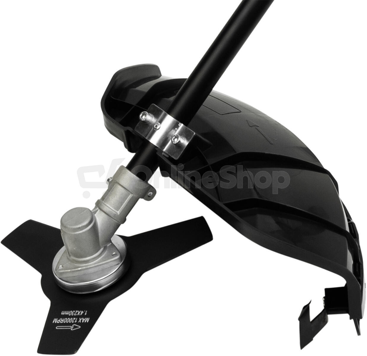 Motor s otáčkami 7000 ot./min zajišťuje plynulý výkon při sečení běžné i hustější vegetace. Funkce Soft start (pozvolný rozběh motoru) chrání zařízení i síť před proudovým nárazem při startu a zajišťuje bezpečnější a pohodlnější ovládání. Výměnná strunová hlava s poloautomatickým vysouváním umožňuje snadné doplňování struny, zatímco 3zubý kovový nůž se hodí pro náročnější porost.