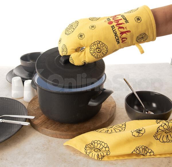 K těmto utěrkám najdete například i ladící kuchyňskou zástěru nebo chňapky z kolekce NEJLEPŠÍ BABIČKA.