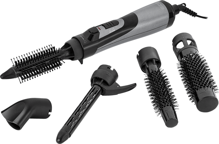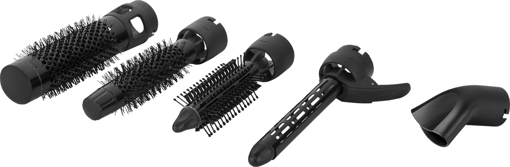 Kromě dvou kartáčů o průměru 25 mm a 38 mm najdete v balení také bodový kartáč, klešťový nástavec a úzký koncentrátor pro snadné a rychlé vysušení vašich vlasů.