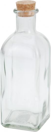 Skleněná lahev s korkovou zátkou poslouží k dekoračním účelům, ale také pro uskladnění tekutin nebo sypkých potravin, drobností,... Bez víčka ji lze využít jako vázičku. Materiál: sklo. Rozměry: objem 0,5 l, 6,5x6,5x20 cm.