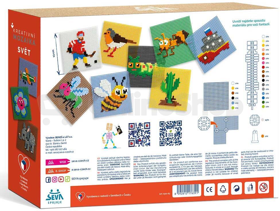 Kreativní mozaika - Svět obsahuje 1450 dílků. Složte si svou mozaiku z barevných dílků podle předlohy nebo své představy. Určeno pro děti od 4 let