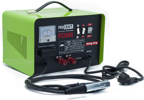 Procraft PZ280A je výkonná nabíječka autobaterií kombinovaná se startovacím zdrojem, která je ideální pro osobní i nákladní automobily, motocykly, dodávky a další vozidla. Díky vysokému nabíjecímu proudu až 20 A a startovacímu proudu 280 A zvládne spolehlivě dobíjet a nastartovat i velké motory.