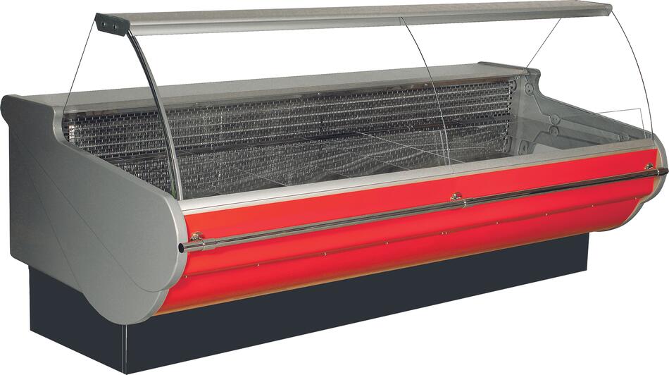 ventilované chlazení|vestavěný agregát|digitální termostat|automatické odtávání|odtávací tyč pod výparníkem|vyhřívané čelní sklo|vnitřní skleněná clona proti mlžení|LED osvětlení vitríny barva růžová (na maso)|nerezová výstavní plocha|nerezový úložný prostor|nerezová odkládací deska|bočnice ABS|zadní plexi krytí|chromovaná tyč proti nárazu|zásuvka 230 V / 50 Hz
