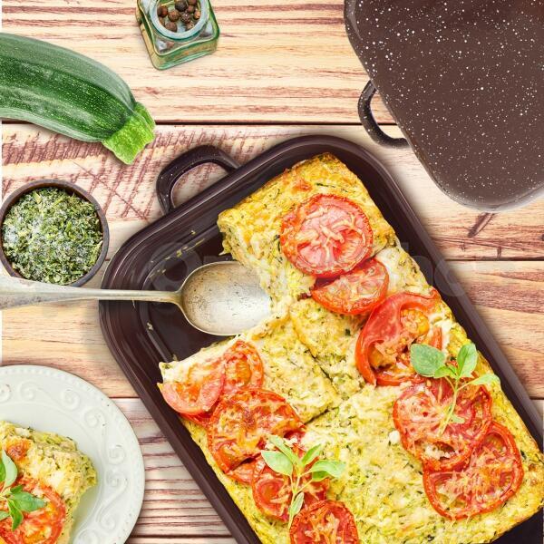 Smaltovaný pekáč s víkem. Oboustranný. Rozměry: objem 5,4 l+5,4 l, 38,5/42,5x25x7/13 cm.