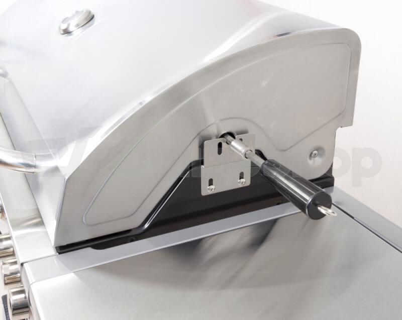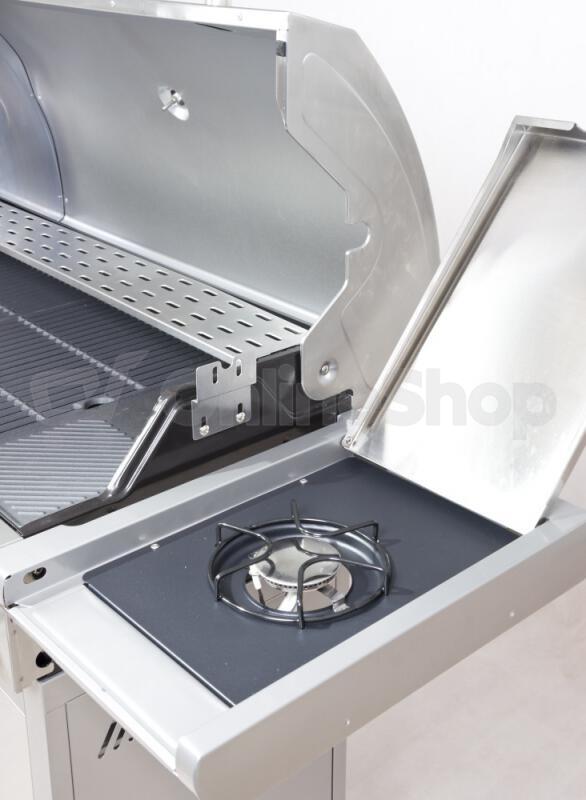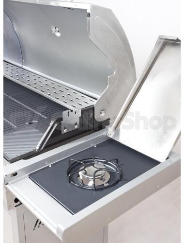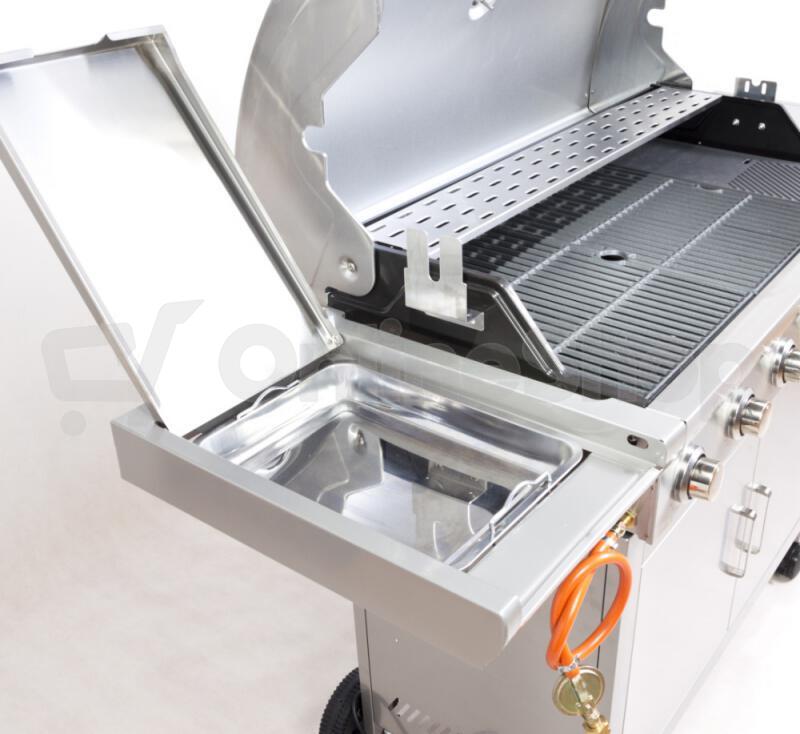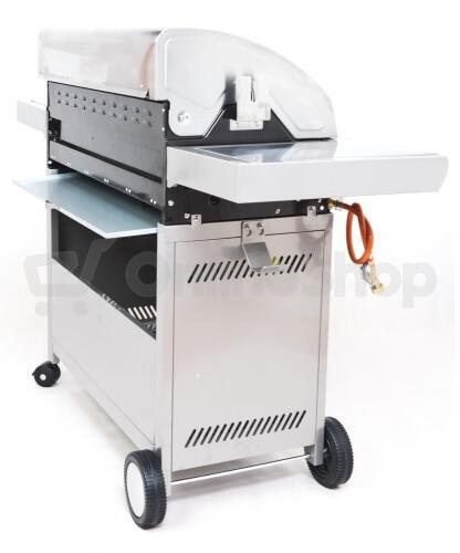 způsob ohřevu: Plynový, zahradní, stojanový, materiál gril. plochy: litina, teploměr, poklop, pojízdný vozík, odkapávací nádoba, regulace teploty, boční hořák