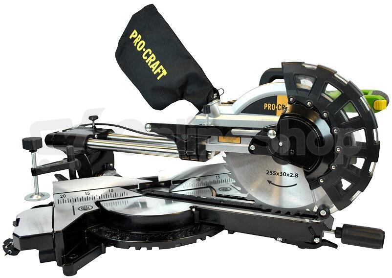 Pokosová pila Procraft PGS256 je určena k příčnému řezání měkkého tvrdého dřeva, lišt z plastu. Silný motor s příkonem 2000W a vysokých otáček až 4500 zaručuje vysoký řezný výkon. Možnost připojení vysavače přes hadici nebo zaručí čisté pracovní prostředí. Upevnění k pracovnímu stolu pomocí otvorů zaručuji vysokou stabilitu při práci. Vybavena čárovým laserem integrovaným ve stroji, který usnadňuje kontrolu řezu a zaručuje vysokou přesnost. Součástí dodávky je kotouč, uhlíkové kartáče vak na prach, a imbusové klíče. Balení karton. Nastavitelný úhel náklonu a úhel příčného řezu. Prodlužovací výsuvné stolky s dorazem.