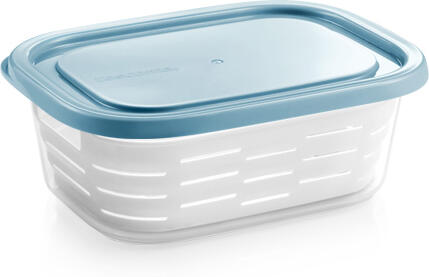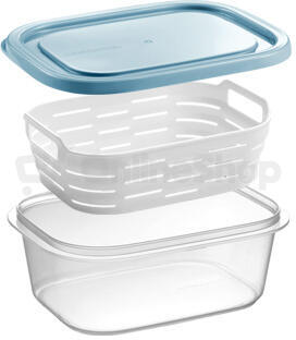 Vynikající pro skladování potravin v mrazničce, s košíkem proti jejich přimrzání. Voda z rozmrazených potravin odkapává košíkem do dózy, potraviny nevlhnou a vydrží déle svěží, lze je přímo v košíku propláchnout. Vyrobeny z odolného plastu. Vhodné do ledničky, mrazničky a mikrovlnné trouby. 3 roky záruka.