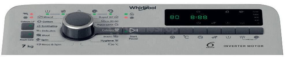 Tato pračka Whirlpool nabízí kapacitu bubnu 7 kg pro vaše prádlo.