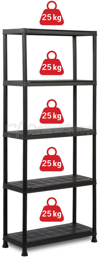 Policový regál PLUS 75/5 vás potěší celkovou nosností až 125 kg, snadnou montáží bez potřeby nářadí i spojovacím systémem.
