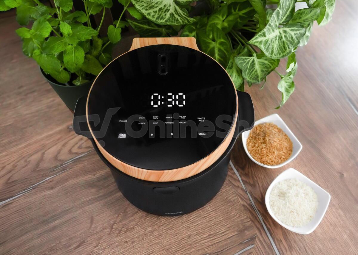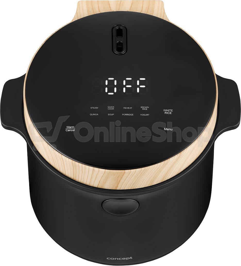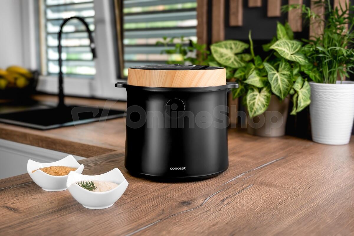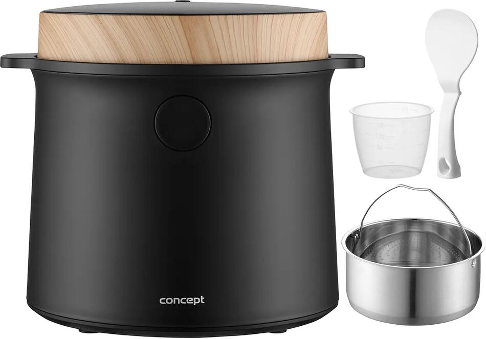 Rýžovar Concept RE4040 kombinuje praktické funkce se stylovým vzhledem, který se hodí do jakékoli kuchyně. Jeho elegantní černý design s dřevěnými prvky perfektně doplní moderní interiér. Díky kompaktním rozměrům se snadno umístí na kuchyňskou linku nebo do skříňky, aniž by zabíral příliš mnoho místa. Navíc je lehký a snadno přenosný, takže si ho můžete vzít na chalupu nebo na jakékoli jiné místo, kde ho budete potřebovat.