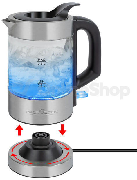 Praktická 0,5l skleněná rychlovarná konvice na vodu. Ideální pro rychlé a každodenní použití. Menší potřeba místa a snížení zbytečné spotřeby vody a elektrické energie. Ideální pro singl domácnosti. Pouzdro ze skla/nerezové oceli.