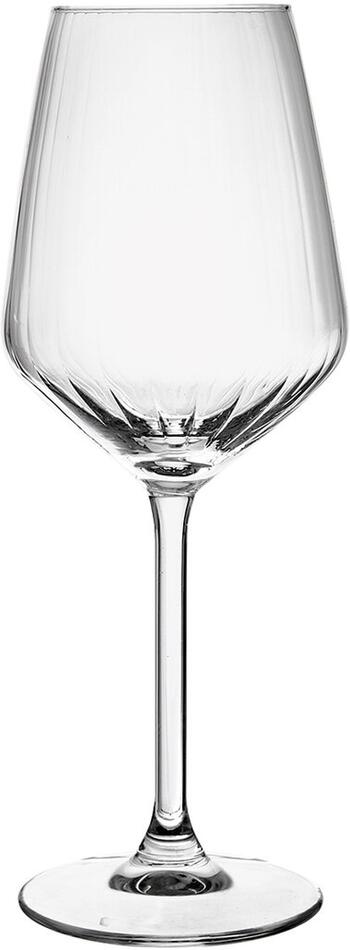 Sklenice na bílé víno se zajímavým plastickým dekorem vertikálních vroubků zdokonalí vaše stolování. Hodí se pro slavnostně prostřený stůl, ale i běžné denní stolování. Díky tvaru sklenic se v nich víno krásně rozvoní a provzdušní. Sada 6 ks. Materiál: sklo. Rozměry: objem 385 ml, pr. 7,5 cm, v. 21,5 cm. Lze mýt v myčce.