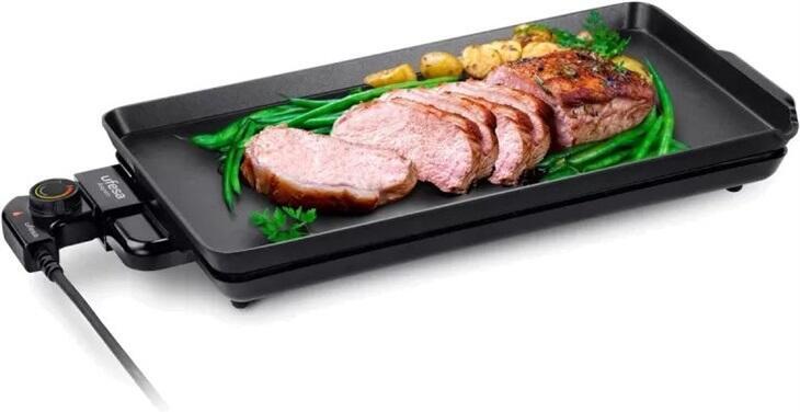 Výkon 2 500 W; Plocha na vaření 49 x 27 cm; Litá hliníková deska; 3 vrstvy nepřilnavého materiálu; Bez PFOA; Protiskluzové nožičky; Vhodné do myčky