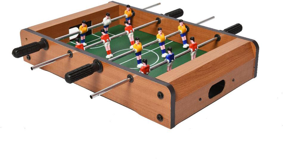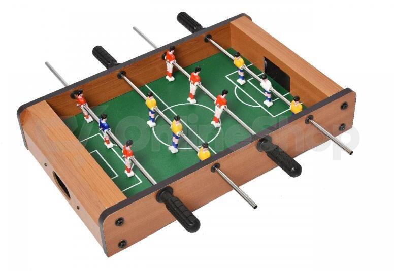 Tento menší stolní fotbálek je určen pro zábavu a trénuje motoriku a koordinaci rukou a očí! Vybavený 6 figurkami na každé straně určitě hráče nadchne skvělými souboji na stole! Hračka je vyrobena z barevného a lakovaného dřeva. Fotbálek je vybaven počítadly gólů a je dodáván včetně 2 míčků.