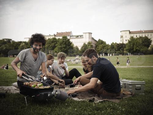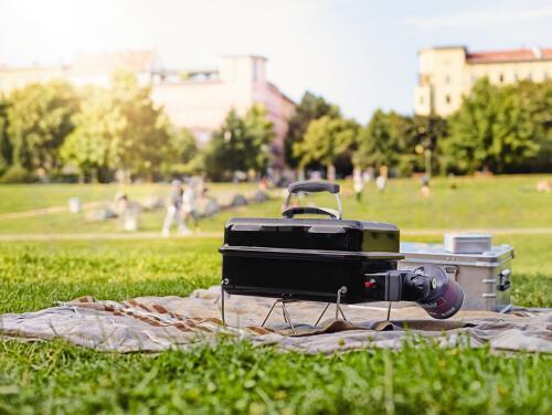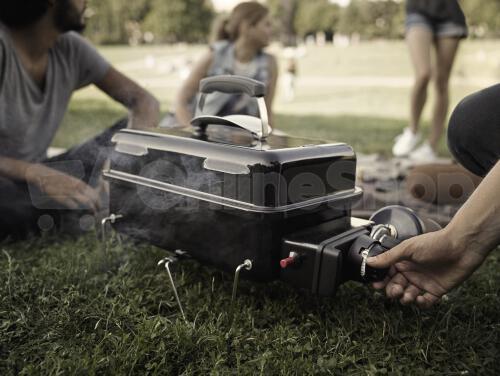 Na koloběžce, nosiči kola nebo jen pod paží: Go-Anywhere plynový gril dělá z každého výletu unikátní grilovací moment. Otočné nohy udržetí poklop při přepravě a při grilování zvyšují gril tak, aby nedošlo k poškození povrchu pod grile.