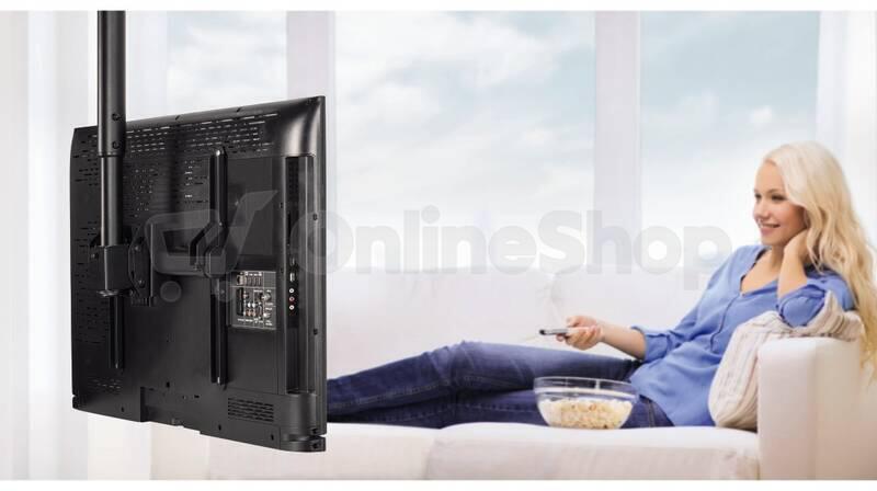 - stropní držák pro upevnění TV, díky kloubu v základně vhodný i pro šikmé stropy (např. do podkroví)
