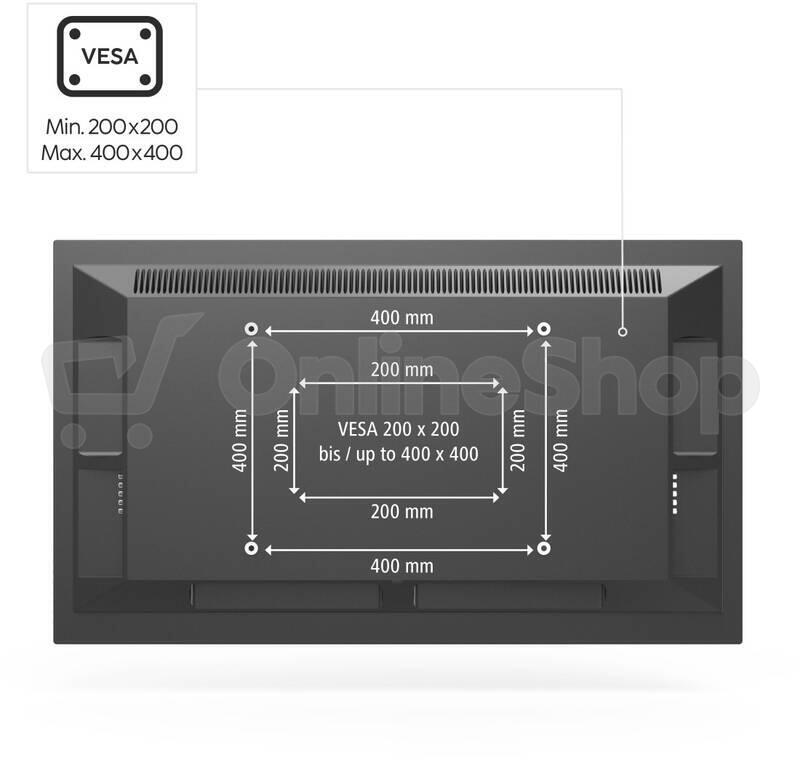 - podpora VESA (rozteč závitů): 200x200 až 400x400