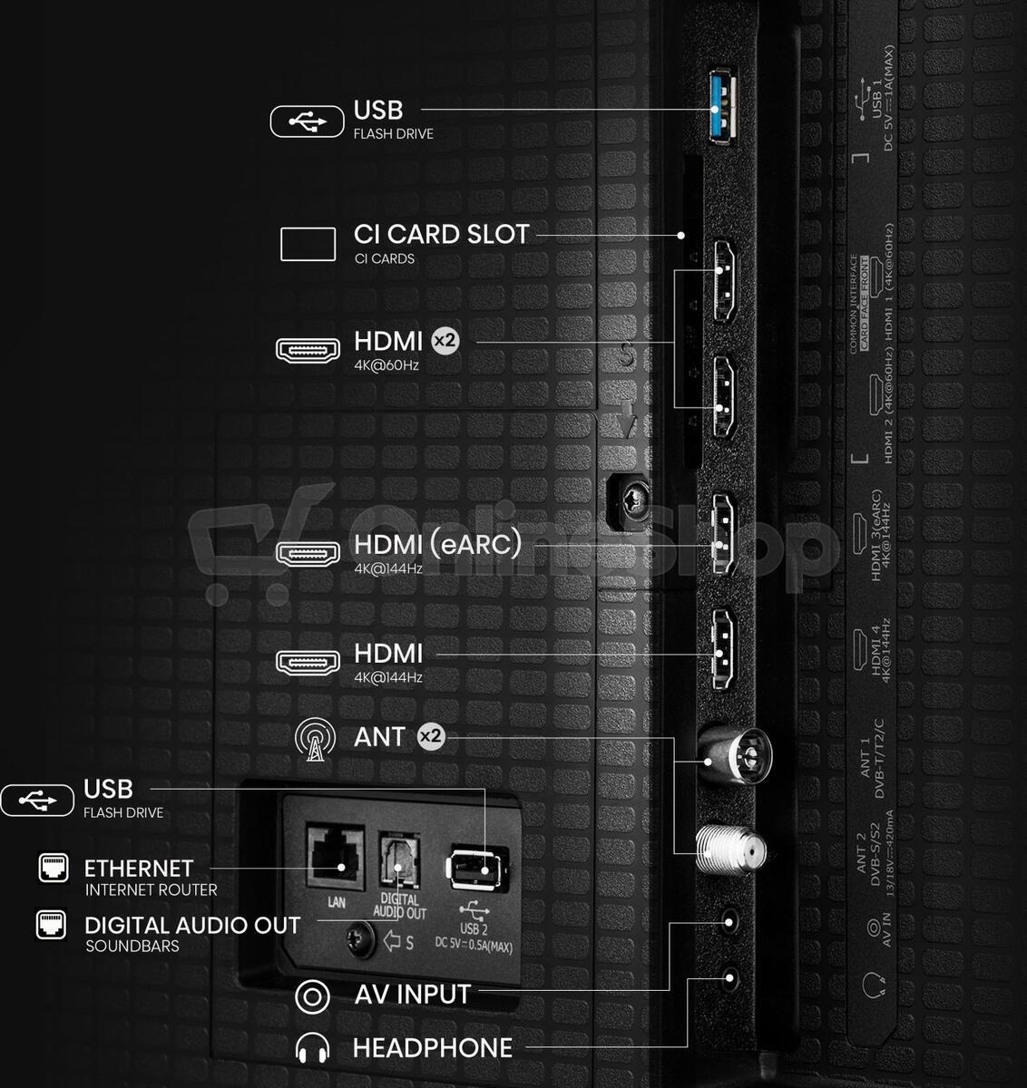 ULED TV - LED, 4K UHD, Smart TV, Wi-Fi, Apple AirPlay 2, netflix, YouTube, O2 TV, disney+, DVB-T2, DVB-C/C2, DVB-S/S2, HDMI, USB, LAN konektor, sluchátkový výstup..