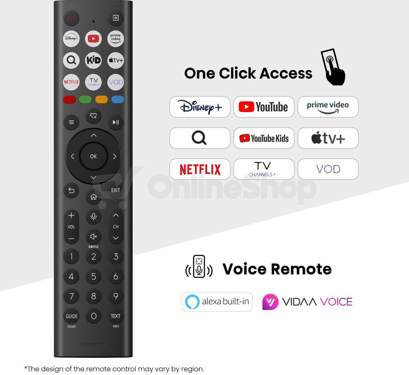 Vyzkoušejte VIDAA Voice a posuňte ovládání televize na novou úroveň pohodlí. Jediným stisknutím tlačítka aktivujete hlasové příkazy. Snadno si vyhledejte opblíbený obash, procházejte pořady nebo změnte nastavení televize. To vše i v Češtině. Televize taky podporuje hlasového asistenta Amazon Alexa.