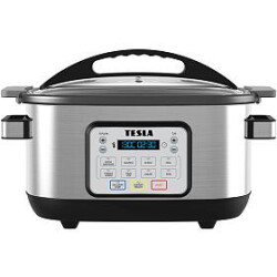 Pomalý hrnec - objem 6 l, příkon 1 250 W, displej, časovač, udržení teploty, automatické vypnutí, regulace teploty, vyjímatelná nádoba, napařovač na zeleninu, termostat, ochrana proti přehřátí, automatické programy, parní koš, odložený start..