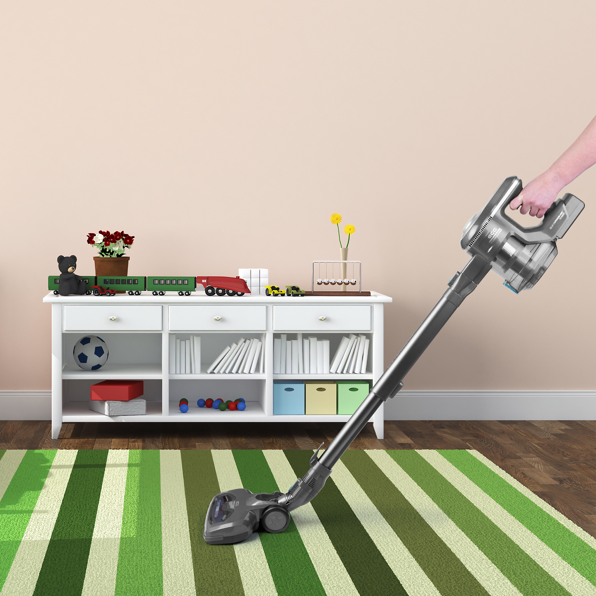 Abyste za sebou nemuseli při úklidu tahat žádný kabel (a postupně ho přepojovat z jedné zásuvky do druhé), může našemu tyčovému vysavači dodávat energii vysoce výkonná Li-Ion baterie. Její plné nabití přitom stačí až na 40 minut úklidu.