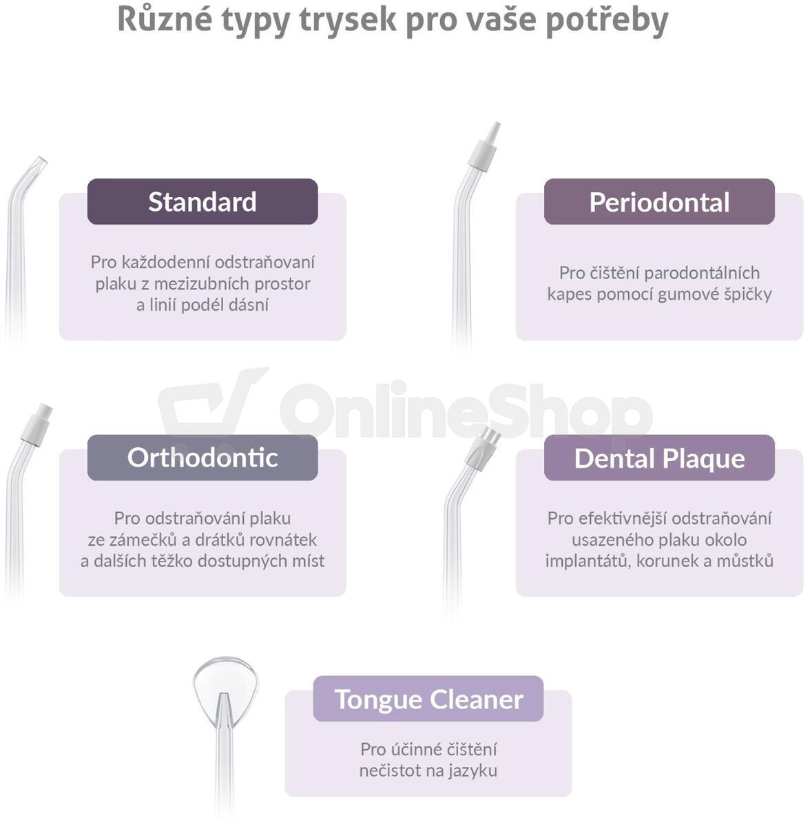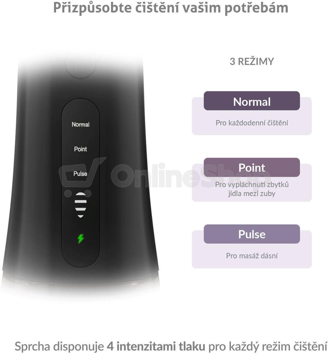• Ústní sprcha vypláchne mezi zuby