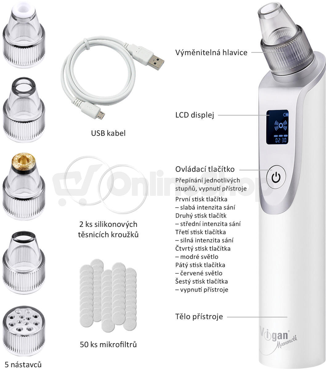 • 5 různých nástavců pro použití na určitých místech obličeje k zajištění ideální péče o vaši pleť