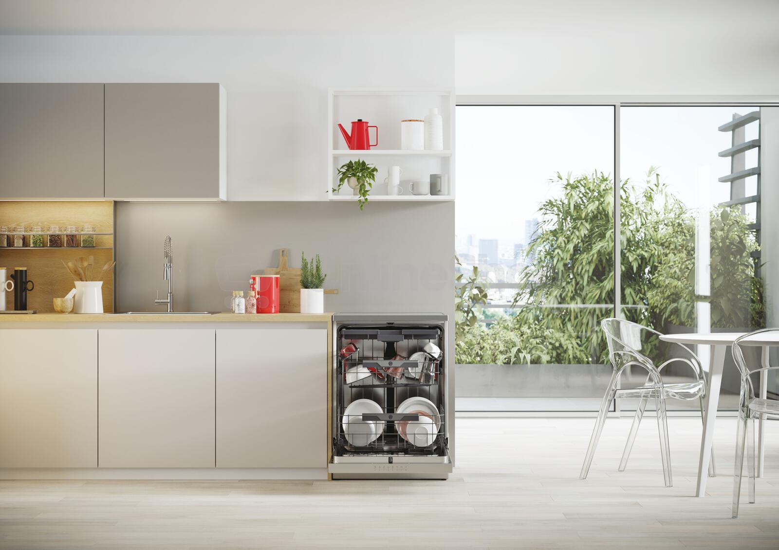 Myčka - volně stojící, hlučnost 42 db, počet sad nádobí 15, počet programů 10, počet teplot 6, chytrá domácnost, automatické otevírání dveří, zásuvka na příbory, poloviční náplň, odložený start, dětská pojistka, Aqua Stop, displej, rychlý program, šetrné mytí skla, intenzivní program..