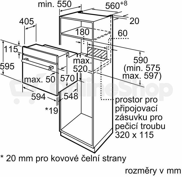• Rozměry niky (V x Š x H): 575 mm - 597 mm x 560 mm - 568 mm x 550 mm