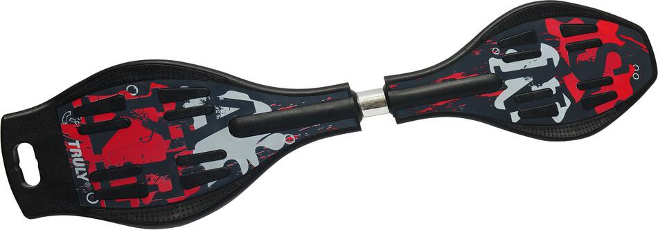 SNAKEBOARD neboli "hadí prkno" na kolečkách. Dvě desky spojené kovovou tyčí a s kolečky otočnými kolem své osy.