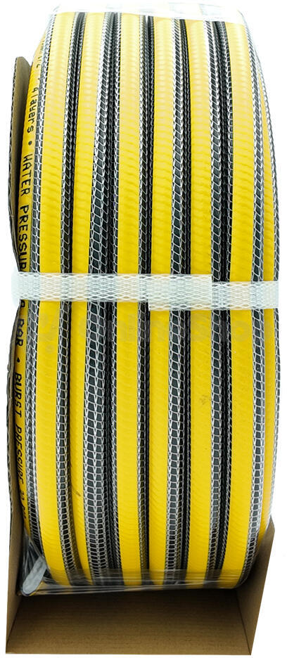 Černo-žlutá zahradní hadice - délka hadice 25 m, maximální tlak 30 bar..