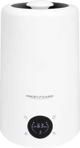 Zvlhčovač vzduchu ProfiCare LB 3077 je vybaven ultrazvukovou technologií, která pomáhá vytvořit optimální vlhkost vzduchu. Je vhodný pro místnosti do velikosti 60 m2. Ideální umístění je např. ložnice, dětský pokoj, obývací pokoj nebo kancelář. Zvlhčovač je vybaven dotykovým LED displejem pro pohodlné ovládání vč. zobrazení aktuální teploty. Časovač lze nastavit na 1, 2, 4, nebo 8 hodin. Kapacita vodní nádrže je 5 litrů a zvlhčovací výkon až 300 ml/hod. Provozovat ho lze ve 3 režimech: